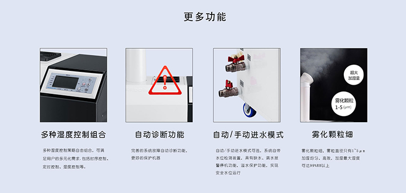 ※ 湿度数码全自动控制,控制系统配备进口湿度传感器,控制精度高、反应迅速。设定后连续工作, 无 需人员职守