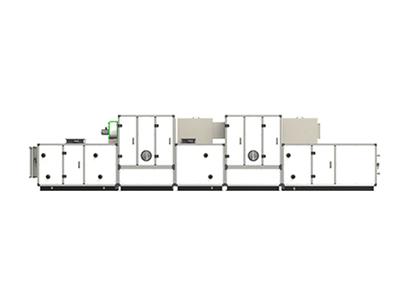 低露点转轮除湿的原理是将经过二级转轮处理的再生空气的热量传递至前级再生区,从而降低未加热的再生空气的含湿量。当转轮转到预处理区时,冷却预处理区,低温除湿效率提高。热量又被加热前的再生空气吸收,同时提高了再生空气的温度。这样就有效降低了再生加热器的能耗,而且除湿后的空气温度较低,低露点处理可以使空气中的含水量降低至0.5~1g,使空气中的水蒸气更难结露,达到降低再生能耗和降低空气露点值的目的。